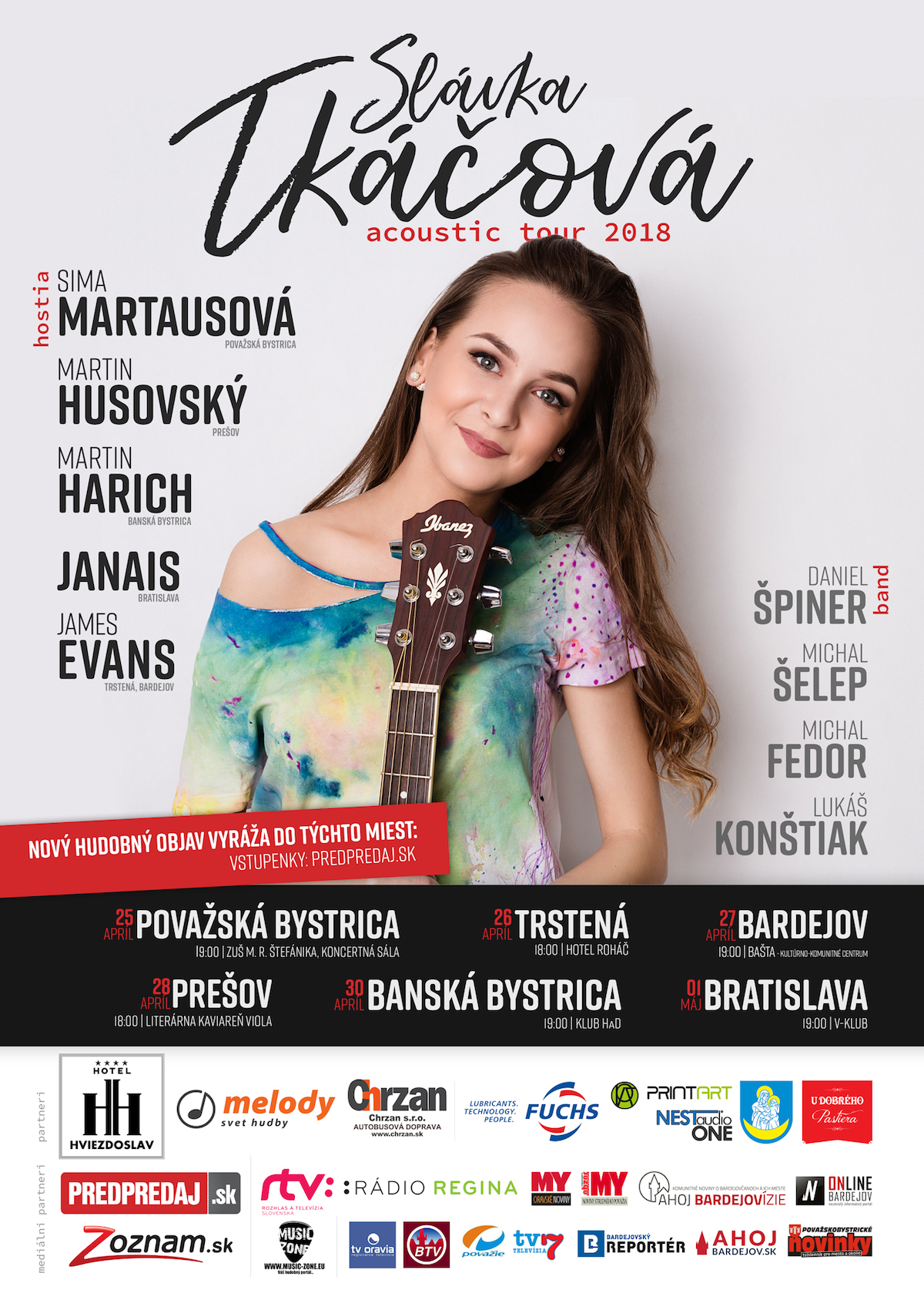 Bratislava, 2. marec 2018 – Do slovenských miest prichádza turné, na ktorom sa známe tváre a špičkoví hudobníci predstavia po boku talentovanej Slávky Tkáčovej. Temperamentnú speváčku, hudobníčku a autorku na akustických koncertoch podporia aj Sima Martausová, Martin Husovský, Martin Harich či Janais.